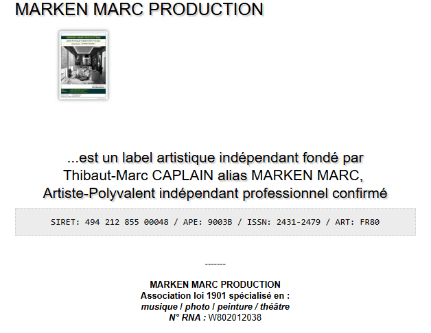 Le label artistique indépendant français MARKEN MARC PRODUCTION, évolue autour :